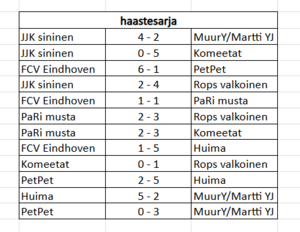 Tänne sivustolle julkaistaan Winter Cup -talvisarjan ottelutapahtumien tulokset.